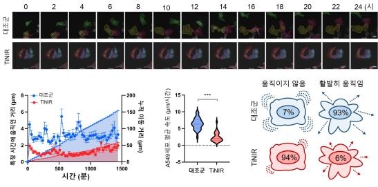 실험 결과 타이니어를 처리한 폐암세포의 전이 속도와 총 이동거리가 대조군에 비해 의미 있는 수준으로 감소한 모습이 확인됐다.