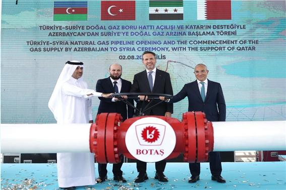 2일(현지시각) 튀르키예가 시리아로 천연가스 공급을 개시했다. 튀르키예 남동부의 시리아 접경지인 킬리스에서 튀르키예, 아제르바이잔, 시리아, 카타르 관계자가 참석한 가운데 열린 파이프라인 개통식이 열렸다.