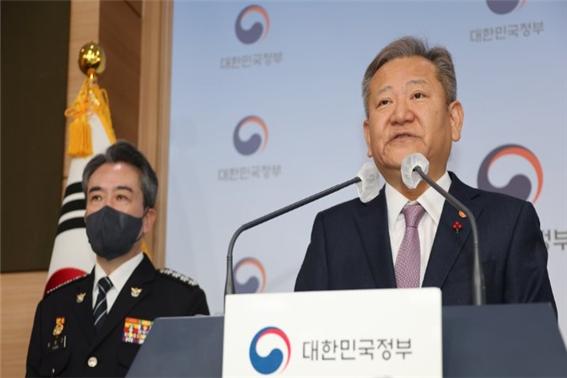 이날 정부서울청사에서 이 장관은 경찰 조직·인사제도 개선방안을 발표한 뒤 경찰국과 관련한 질문을 받고 이같이 답하면서 위법성이 전혀 없음을 강조했다.