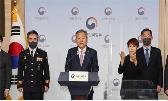 이날 발표된 경찰 조직·인사제도 개선방안은 행안부 내에 경찰국을 설치하는 것과 별도로 정부가 경찰 지원에 초점을 맞춰 대책을 내놓은 것으로, 이태원 참사 책임자로서 사퇴 압박을 받고 있는 이 장관이 직접 브리핑에 나서 취지 등을 설명했다. 브리핑에는 이 장관과 함께 참사 책임자로 지목돼 온 윤희근 경찰청장도 배석했다.