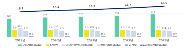 23년 교통약자 1,586만명 22년 대비 18만명 증가