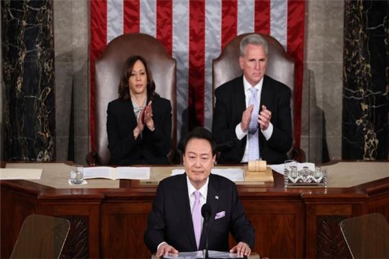 ‘국빈 방미’ 나흘째인 이날 오전 윤 대통령은 워싱턴DC의 미 상·하원 합동회의 연설에서 “인류의 자유를 위해 대한민국이 국제사회와 힘을 모아 해야 할 일을 반드시 할 것이다. 미국과 함께 미래로 나아갈 것”이라며 이같이 밝혔다.