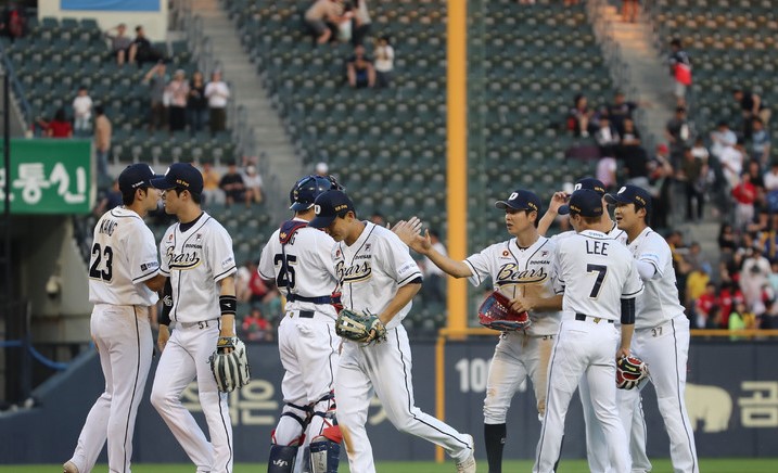 두산 베어스가 5위에서 3위로 뛰어올랐다. 5일 포항구장에서 열린 ‘2023 신한은행 쏠 KBO리그’ 삼성 라이온즈와의 홈경기에서 두산은 7-4로 역전승을 거뒀다. 4연승을 달린 두산(37승 1무 36패)은 롯데 자이언츠(36승 36패), NC 다이노스(36승 1무 36패)를 공동 4위로 밀어내고 3위로 올라섰다. 원정 4연승 행진을 이어 간 것이다.